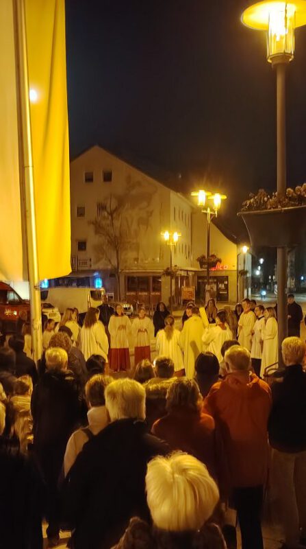 Zur überlieferten Todesstunde Christi um 15 Uhr fand die große Karfreitagsliturgie in der Pfarrkirche statt, bei der die Verlesung der Johannes-Passion, die feierlichen Fürbitten sowie die Kreuzverehrung im Mittelpunkt standen. Ausklang fand der Tag mit einer Andacht der Kolpings-Familie am Abend, bei der Rosen zum Kreuz gebracht wurden.