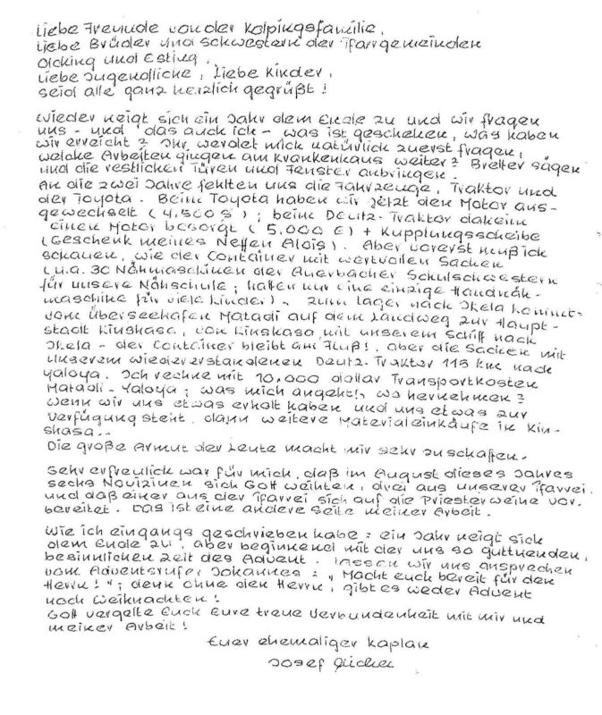 Weihnachtsbrief von Pfr. Josef Aicher – 23.12.2025