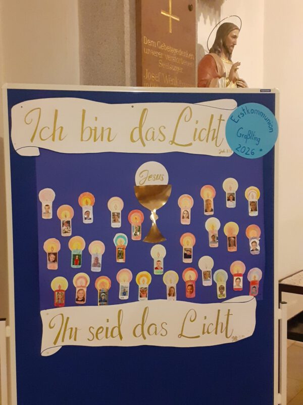 Am V. Sonntag im Jahreskreis wurden im Rahmen der Gottesdienste die Erstkommunionkinder der Gemeinde vorgestellt. Dabei teilten die Kinder Gebetskärtchen an die Gottesdienstbesucher verbunden mit der Bitte, für sie während der Erstkommunionvorbereitung zu beten. Thematisch stand das Wort Jesu: “Ihr seid das Licht der Welt” aus dem Tagesevangelium im Mittelpunkt (Mt 5,13-16).